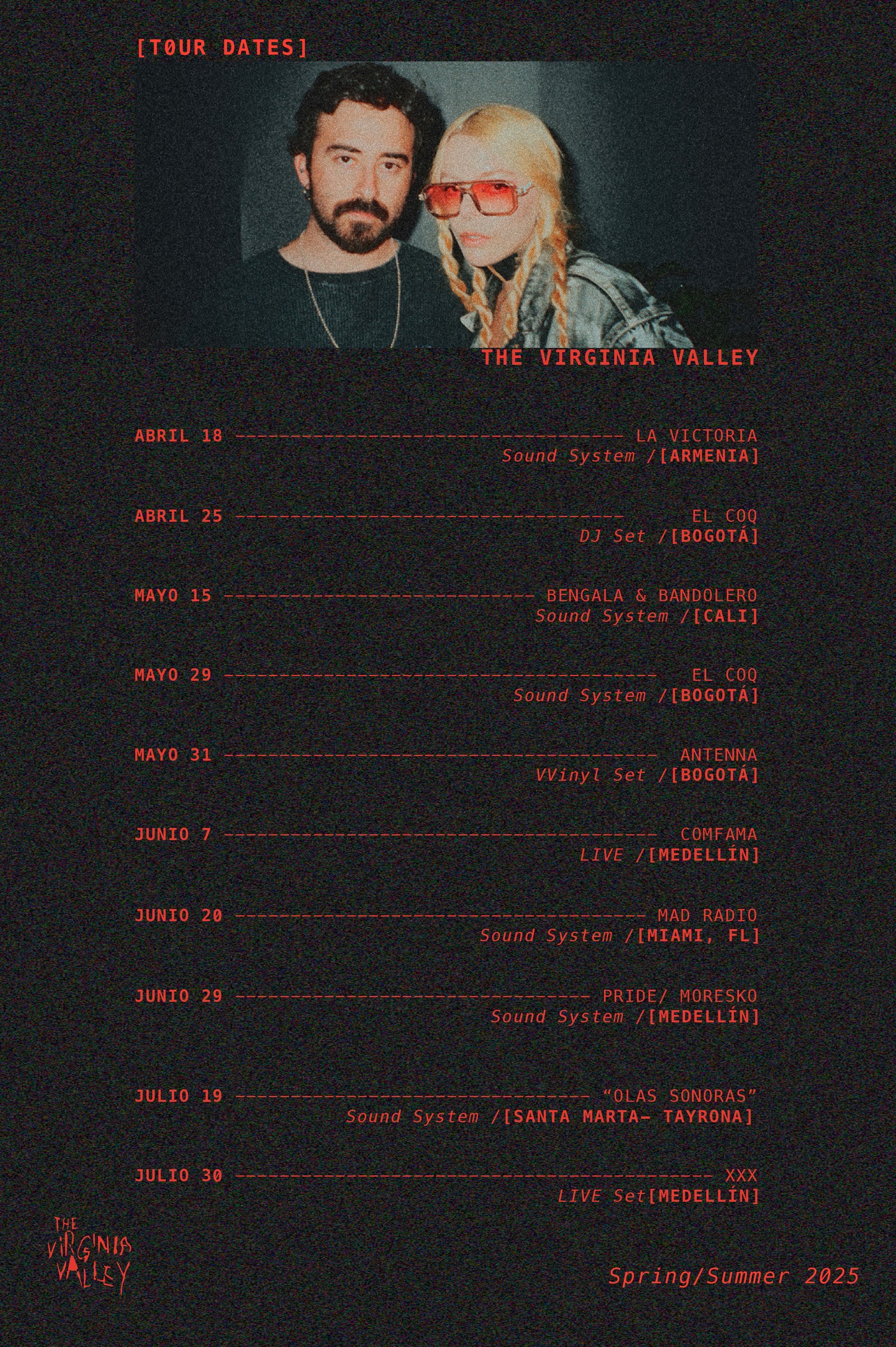 The Virginia Valley is an electro-clash, dark-wave, and synth-pop duo from Medellín, Colombia. Their debut album "No Futuro" dropped in March 2023, aligning with their appearance at the prestigious SXSW festival in Austin, Texas.